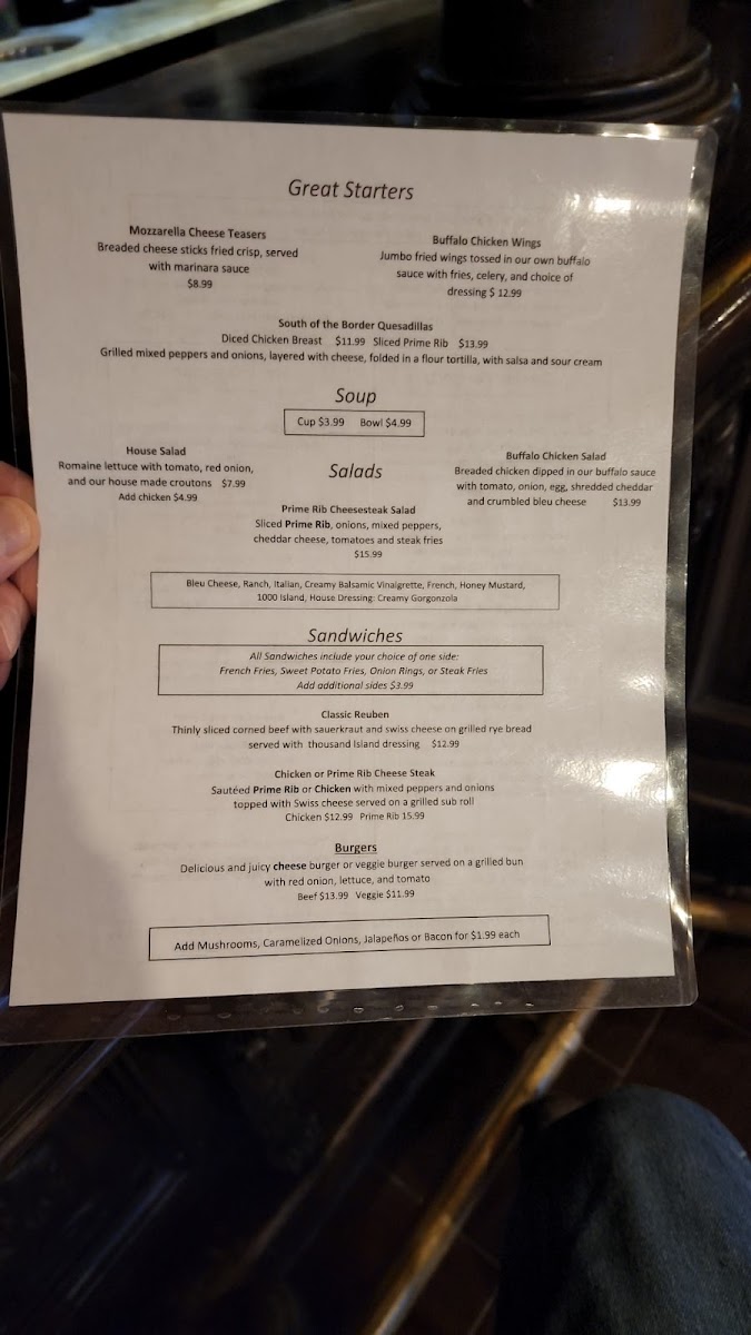 Lambs Creek Food & Spirits offers a diverse and mouthwatering menu that promises to satisfy a wide range of tastes. Starting with their Great Starters, you'll find favorites like Calamari, Bread Lover's Bruschetta, and the savory Mozzarella Cheese Teasers. For a spicy kick, try their Buffalo Chicken Wings or the zesty South of The Border Quesadilla, which can be customized with Diced Chicken Breast or Chopped Prime Rib for an extra punch.
