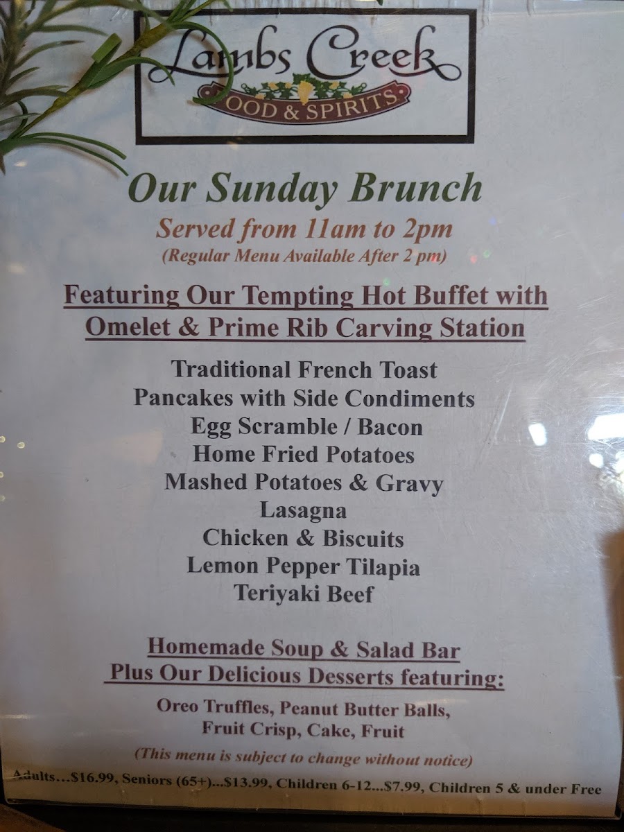 Lastly, no meal at Lambs Creek is complete without a sweet treat from their Dessert Menu. Indulge in the rich Chocolate Decadence, the creamy Cheesecake, or the delicate Crème Brûlée Sampler. For something refreshing, try the Italian Lemon Cream Cake, or the nostalgic Hot Fudge Sundae for the perfect finish.